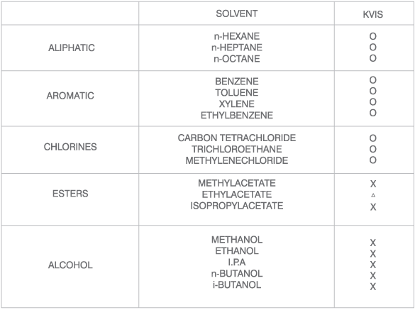 Solubility of KVIS in various solvents